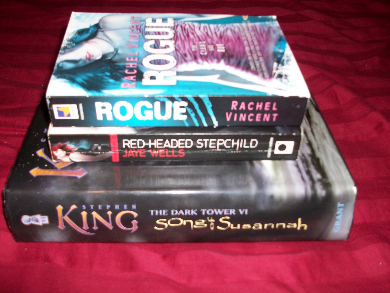Found these in the clearance section of Half Price Books :) I was thrilled to find the Sabina Kayne book! That series is close to the top of my TBR list. And I now own all of the Dark Tower series but the last book, woo hoo!! Now to read them…