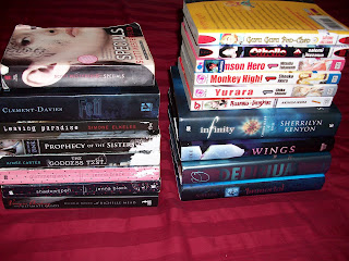 Okay, so this weekend was the much anticipated Dayton Metro Library booksale at Hara Arena!! YAY!! They hold it twice a year and you can get used library books for dirt cheap. Sometimes the paperbacks are pretty beat up (you can see on a few of them where I had to rip off the library stickers), but the hardbacks are usually in amazing condition due to the dust covers.