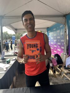 While in the Penguin line, there was a line next to us for Young World (which they were promoting the shit out of, by the way). The line was INSANELY long so I didn’t bother trying to have someone hold my spot. However, when it got to the very end I got a wild hair and went over to see if there’d be any copies left. And you know what? There was ONE left after all the ticketed people went through, so I was able to get it! It was pretty freakin’ rad! Lady Luck came through for me a second time! Soman Chainani was standing at the booth so I was able to snag a pic (the books were already signed).